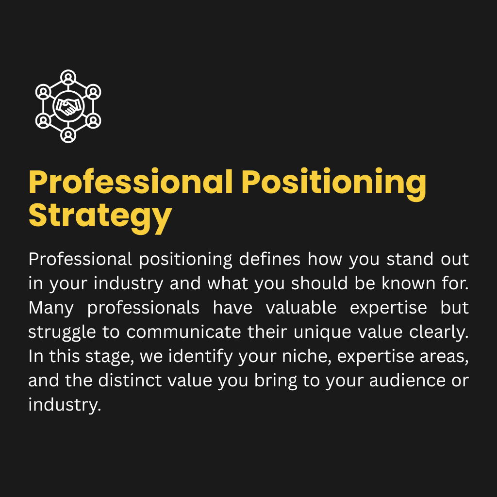 The result is a strong professional identity that reflects your expertise, ambitions, and leadership potential, helping you attract the right opportunities, partnerships, and recognition.